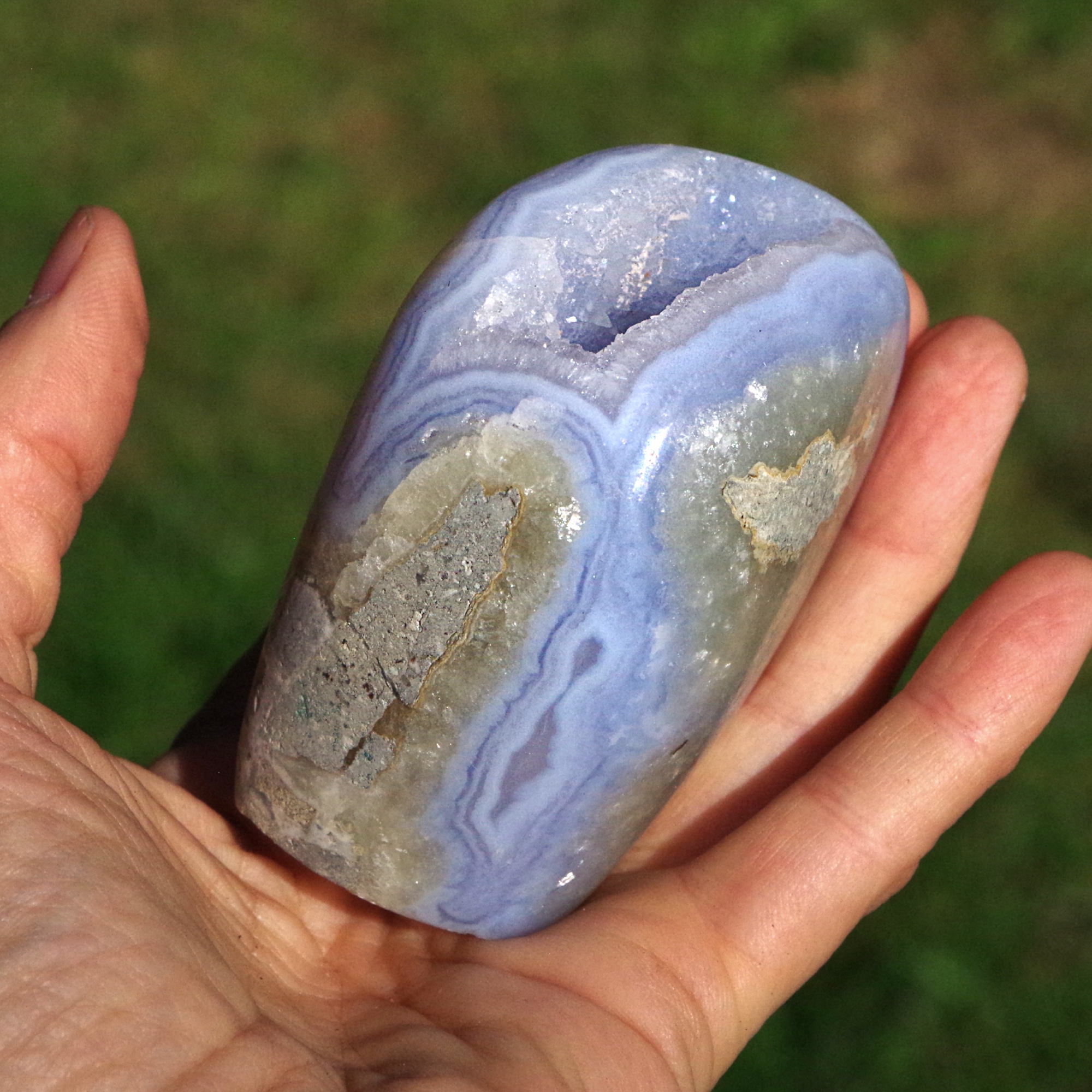 Be the first to review “Blue Lace Agate in Matrix with Calcite and Drusy Quartz Crystals”