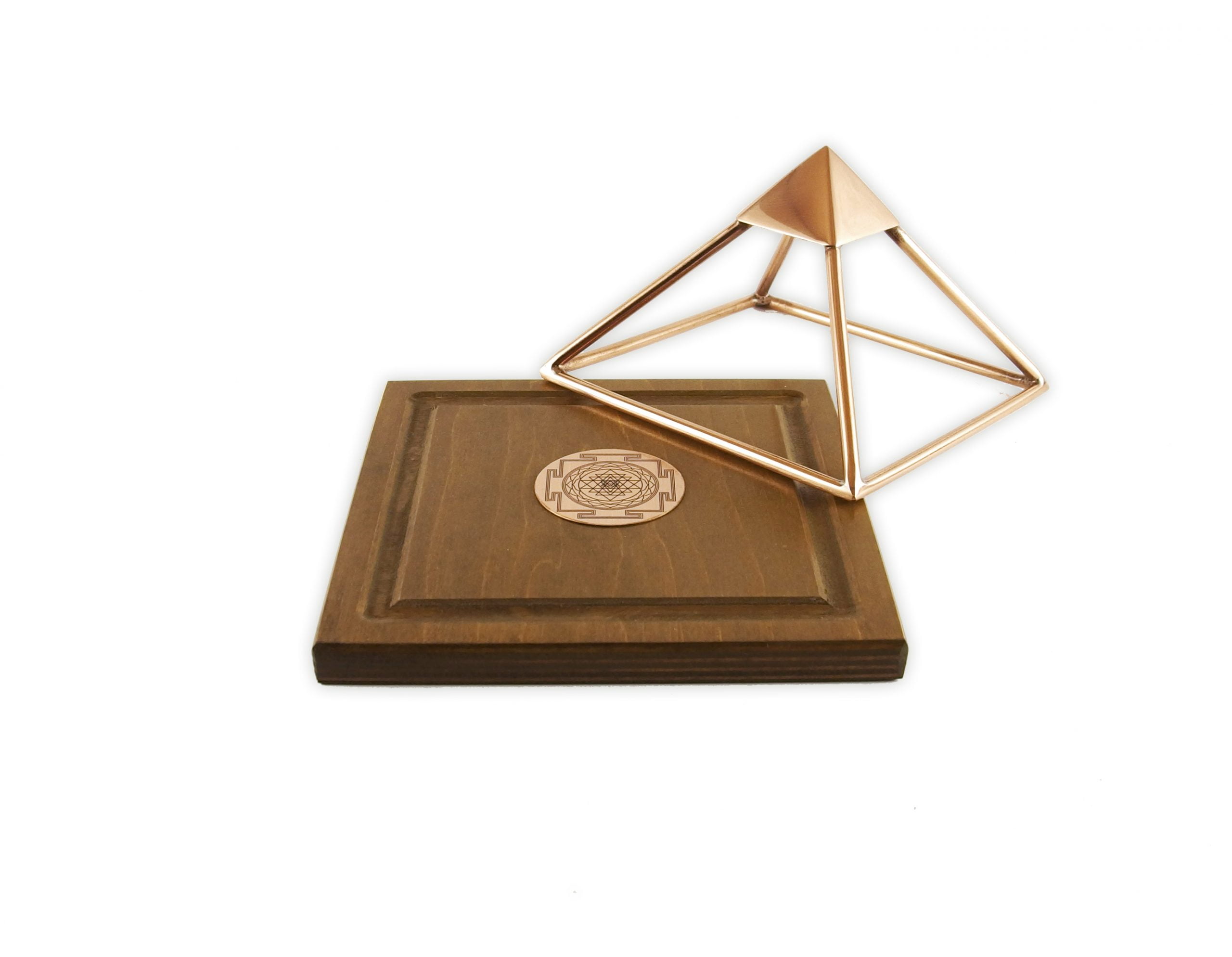 Pyramid rests in grooves on the wooden base and is detachable. Suitable for energizing water, fruit, vegetables, crystals, flower essences, oils, seeds, etc.